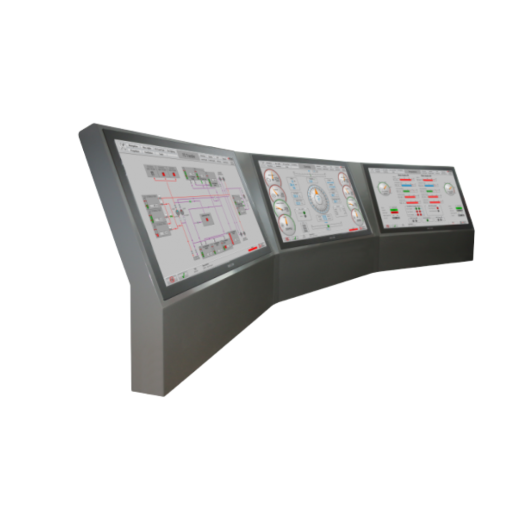 Built for reliability, the VMS features ruggedized operator workstations (10″–86″ touchscreen, HD/UHD), control processors with multiple protocol interfaces, and operator panels with local logic and display. It supports redundant Ethernet topologies and IEC-61131-3 compliant PLC programming.